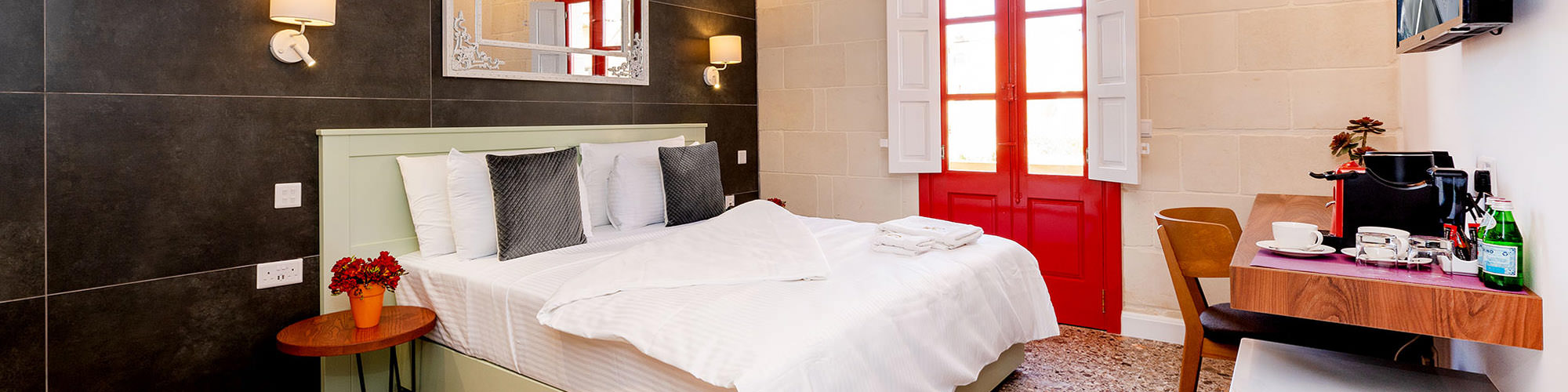 - 2 Single beds (90 cm x 200cm) or 1 Double bed (180cm x 200cm)